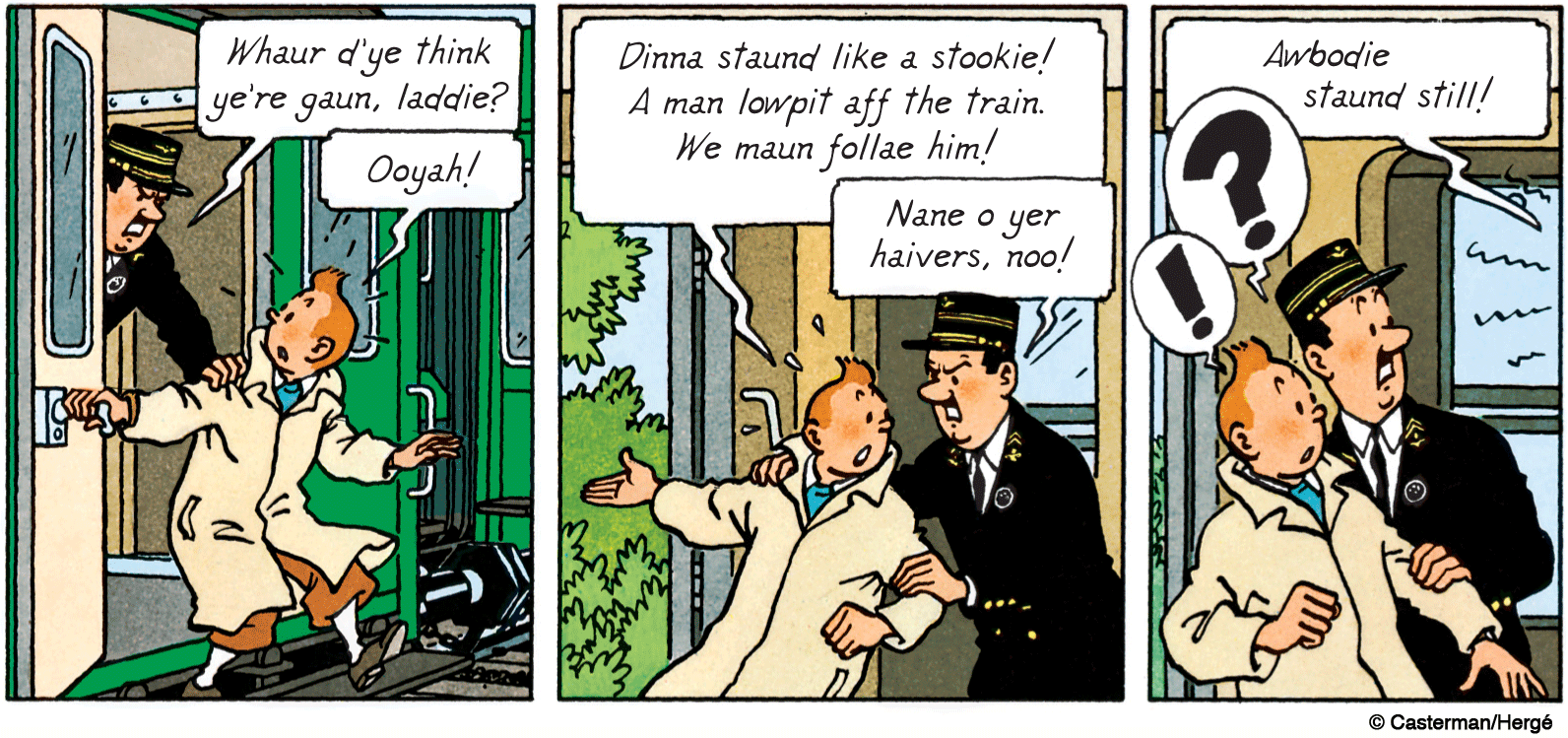 THE VERY FIRST TINTIN TITLE IN SCOTS!