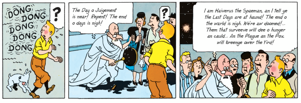 Mrs Lintie Tintin’s landlady. Her surname is the Scots word for a linnet. (In French she is called Madam Pinson, which means ‘Mrs Chaffinch’.)
